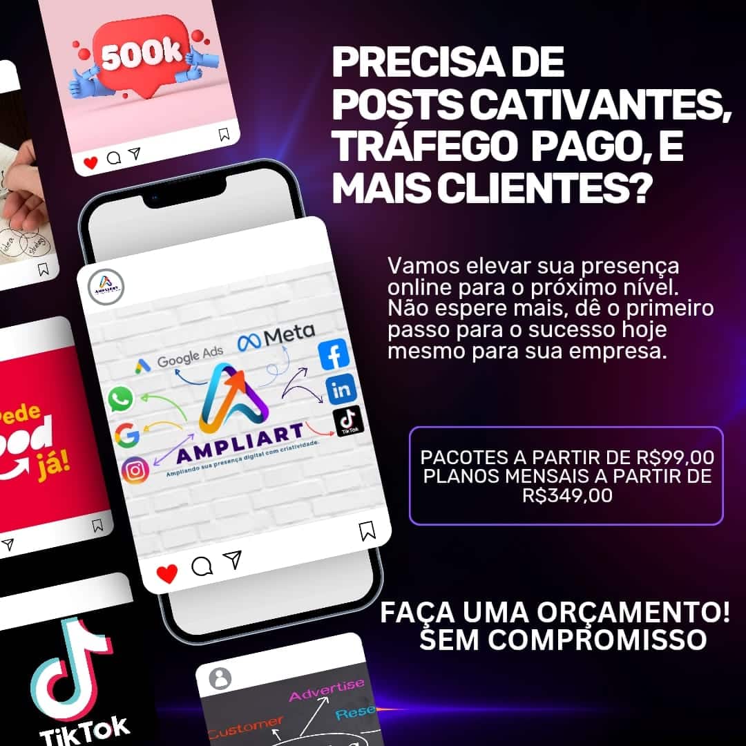 Oferecemos planos completos de gerenciamento e gestão de redes sociais, além de pacotes de artes personalizadas para atender às necessidades do seu negócio.